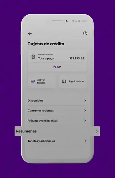 - En la sección de «Resúmenes», podrás ver el resumen de tus tarjetas de crédito.